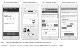 The introduction of mandatory tasks in LoopMe opened for a more powerful way to collect and analyze research data. The tasks allowed for a more fine-grained design of participant behavior. The logical link between tasks, emotional ratings and user-generated text allowed for quantifying cause-effect relations between independent variables (i.e., behavioral tasks) and dependent variables (i.e., emotions, tags and written reflections). Since many of the research oriented functions were kept in version 4 of LoopMe, the research team found itself with even more powerful means at hand for data collection and analysis than before.